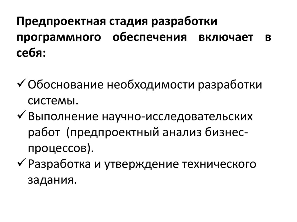 Предпроектная стадияразработки.