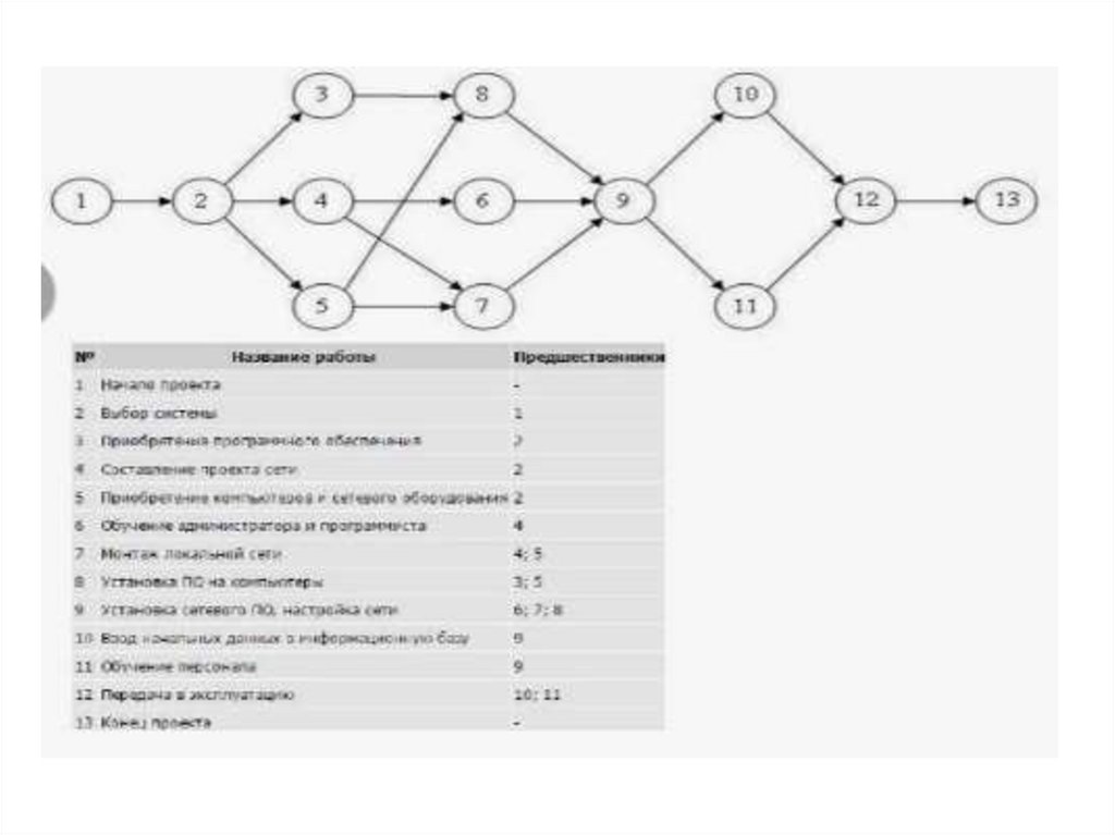 Сетевой график• Сетевой график состоит из событий и работ.