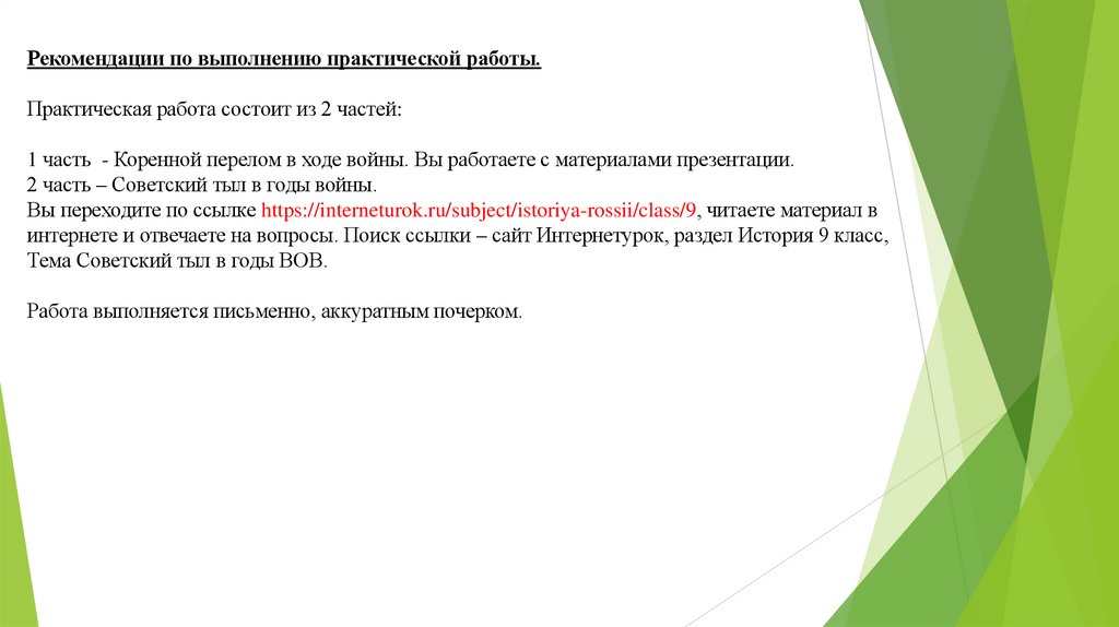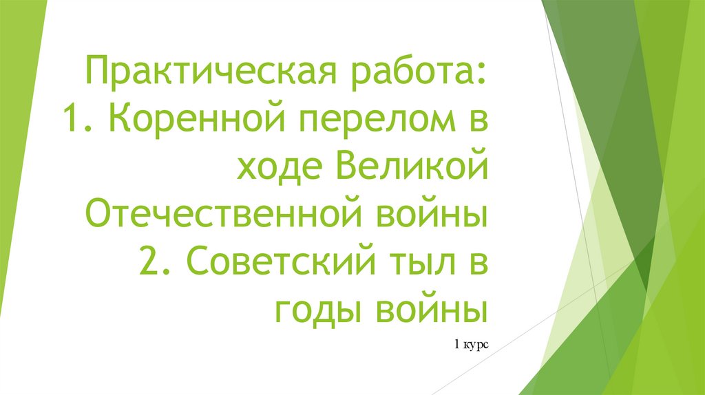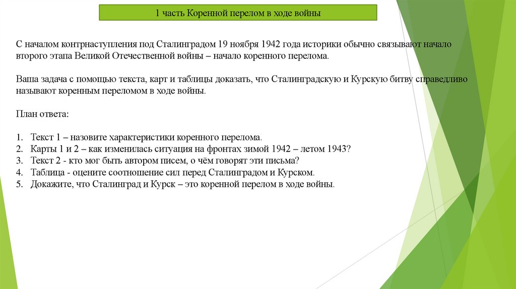 1 часть - Коренной перелом в ходе войны. Вы работаете с материалами презентации.