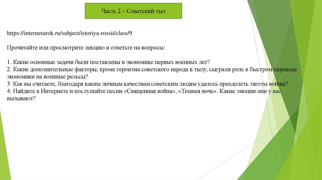 Часть 2 – Советский тылhttps://interneturok.ru/subject/istoriya-rossii/class/9