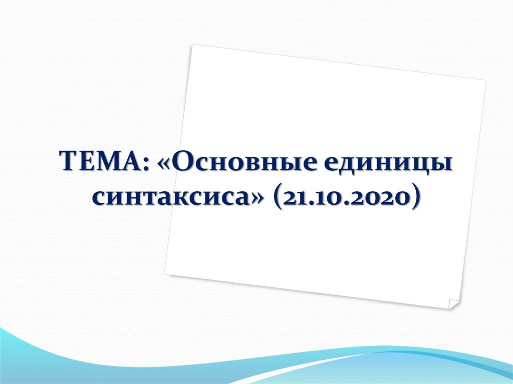 1. ТЕМА: «Основные единицы синтаксиса» (21.10.2020)