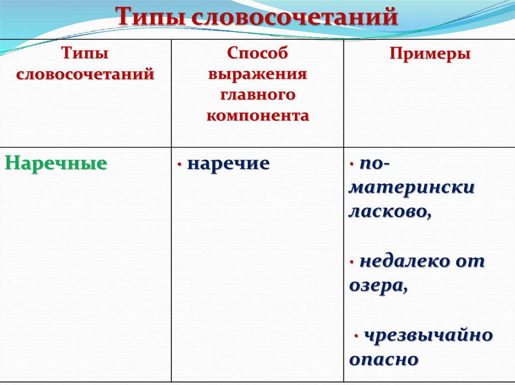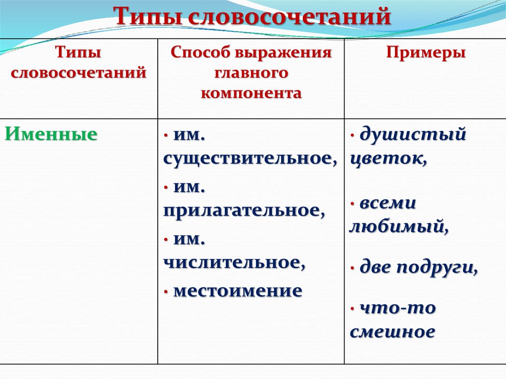 Типысловосочетаний