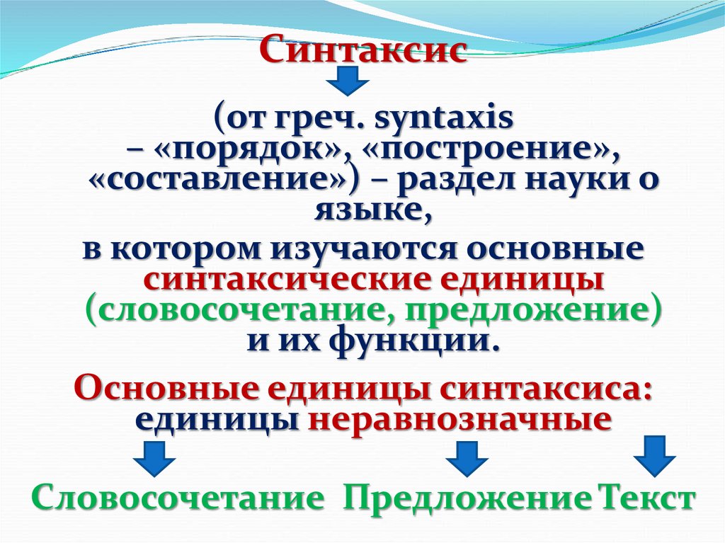 Основные единицы синтаксиса: