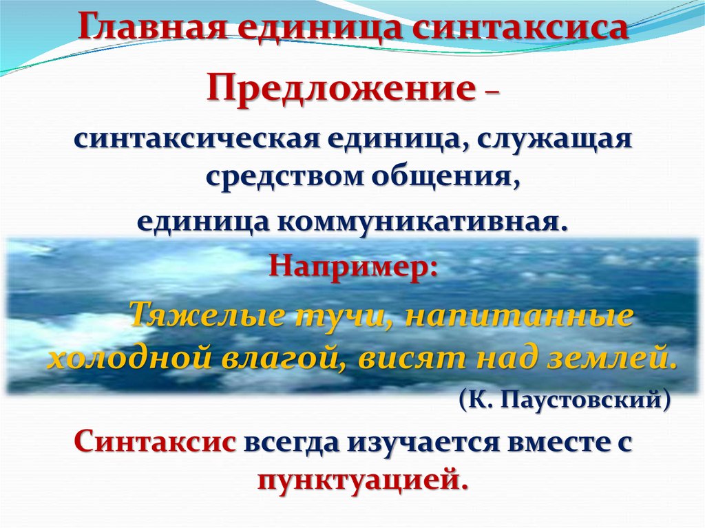 Предложение –синтаксическая единица, служащая