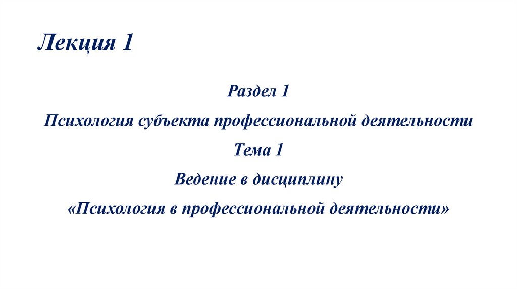 Тема 1 Ведение в дисциплину «Психология в профессиональной деятельности»