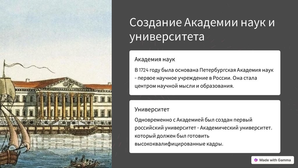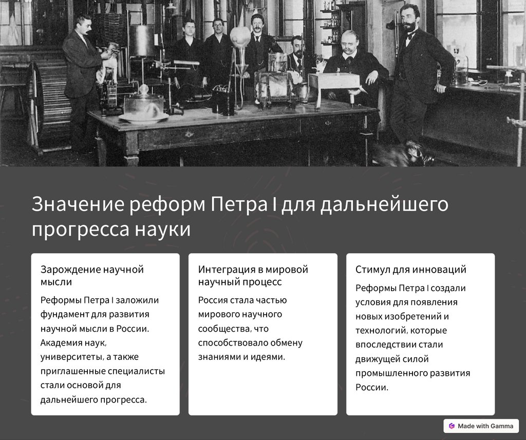 Значение реформ Петра I для дальнейшегопрогресса науки
