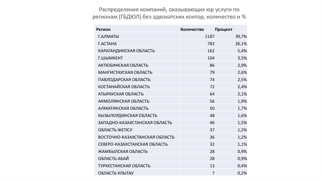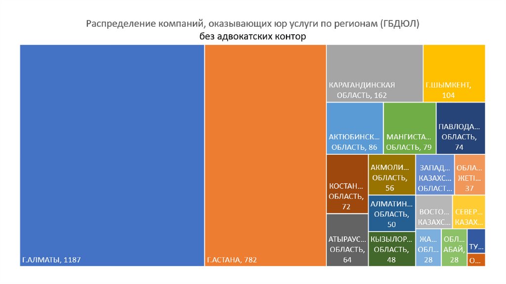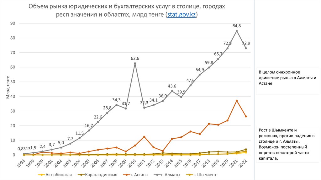 Объем рынка юридических и бухгалтерских услуг в столице, городахресп значения и областях, млрд тенге (stat.gov.kz)