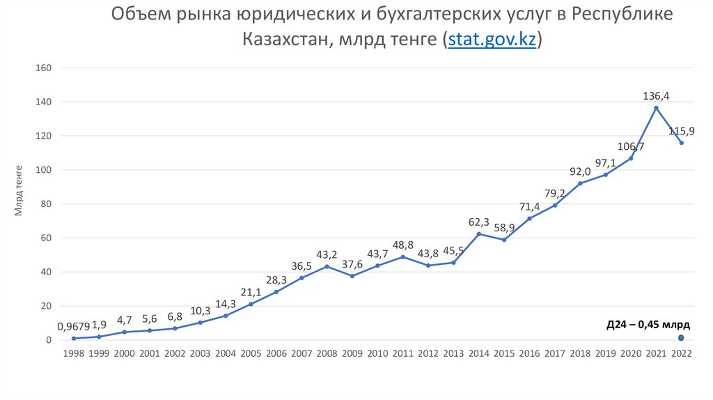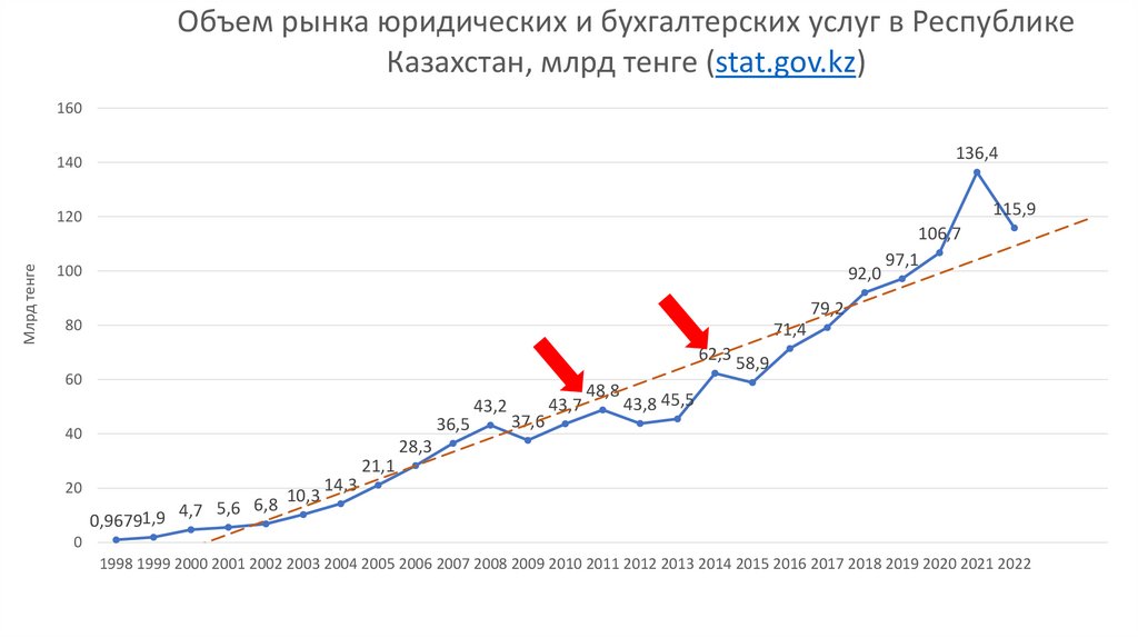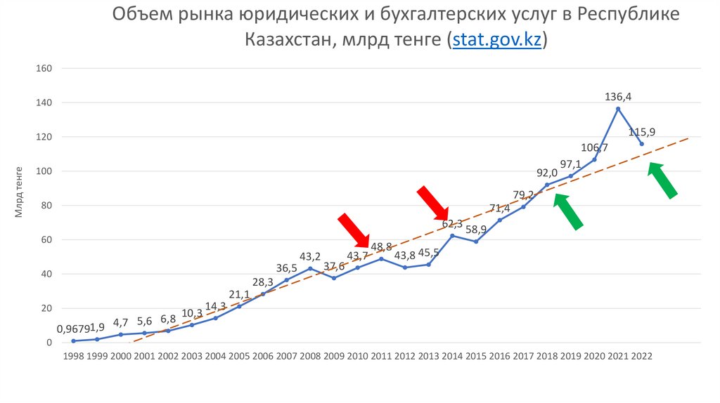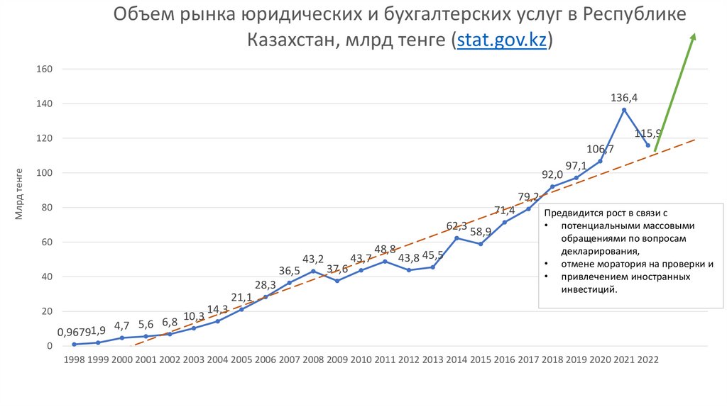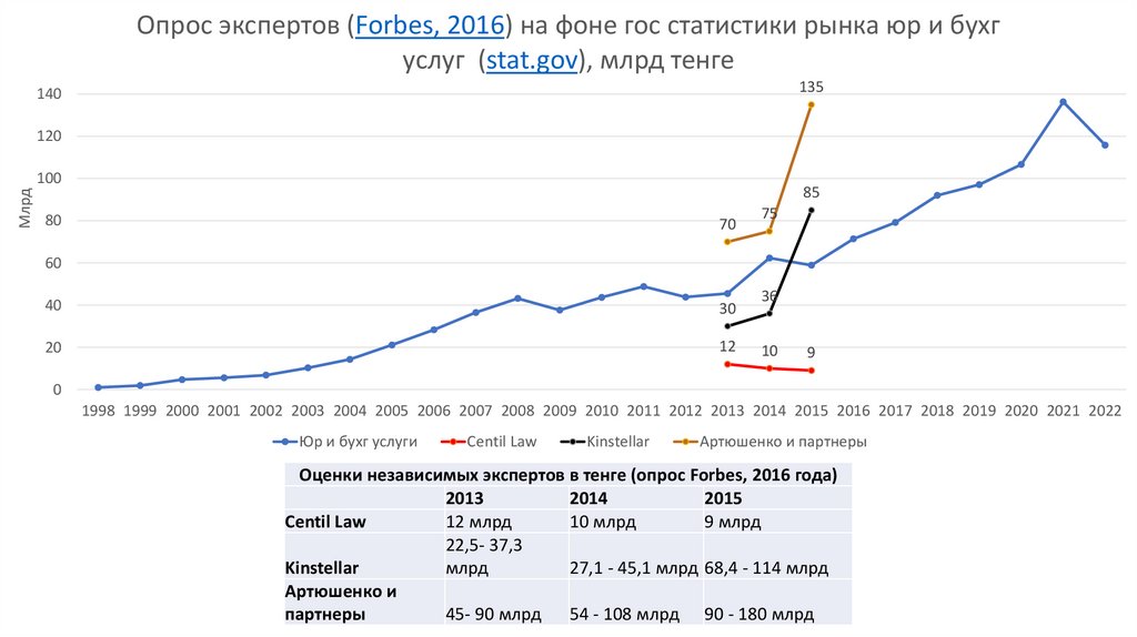 Опрос экспертов (Forbes, 2016) на фоне гос статистики рынка юр и бухгуслуг (stat.gov), млрд тенге