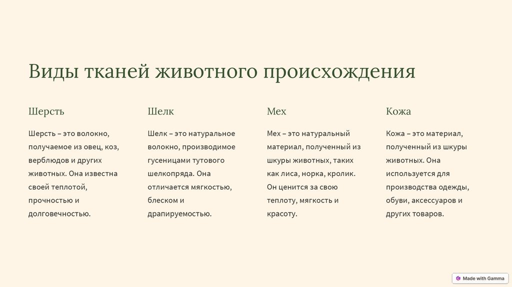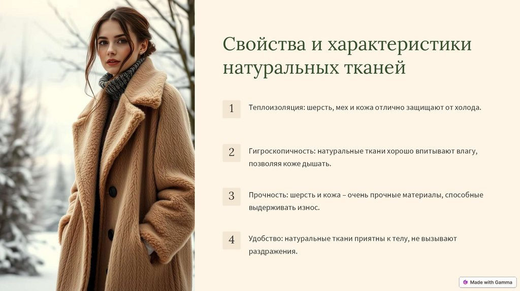 Ткани животного происхождения имеют ряд преимуществ: теплоту,