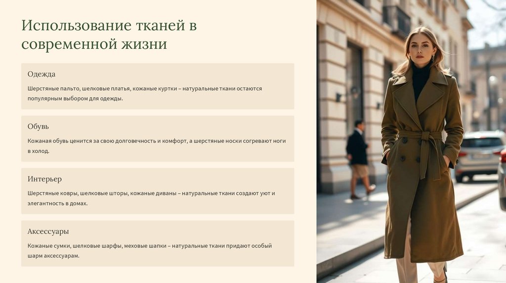 Шерстяные пальто, шелковые платья, кожаные куртки – натуральные ткани остаются