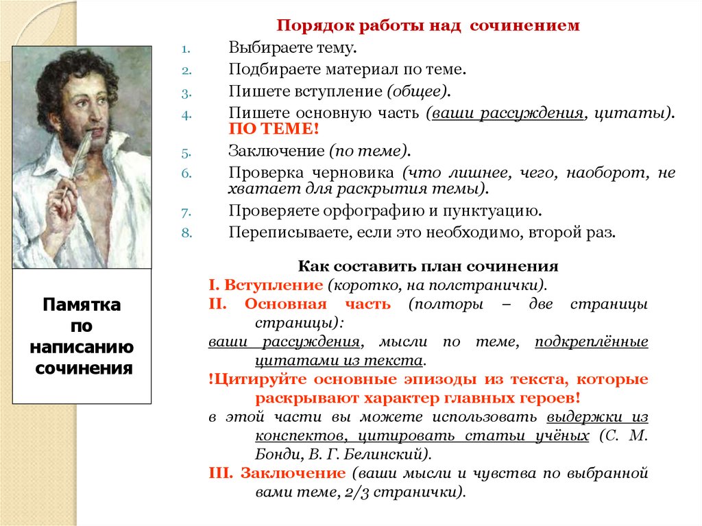 Порядок работы над сочинением