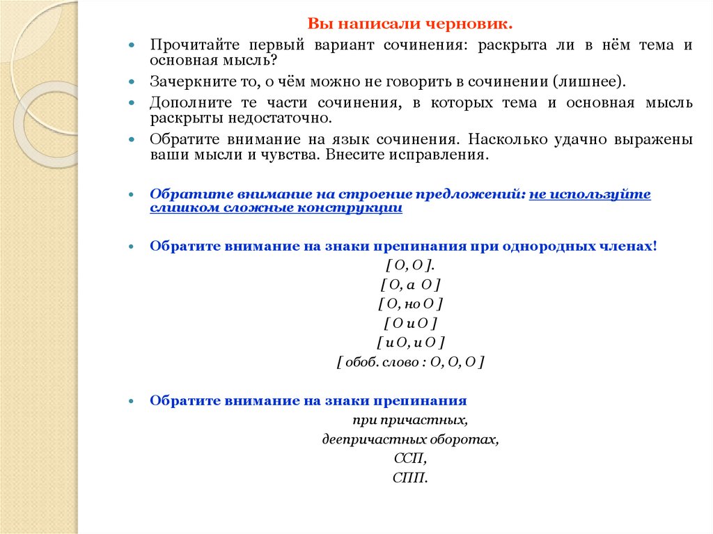 Вы написали черновик.Прочитайте первый вариант сочинения: раскрыта ли в нём тема и