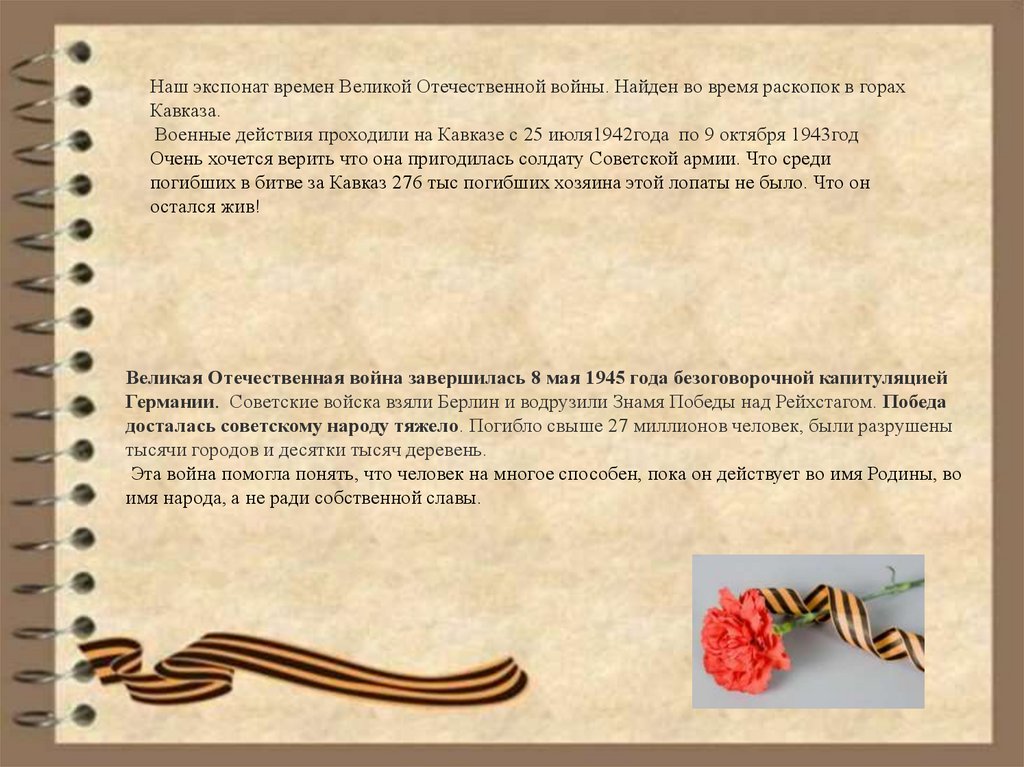 погибших в битве за Кавказ 276 тыс погибших хозяина этой лопаты не было. Что он