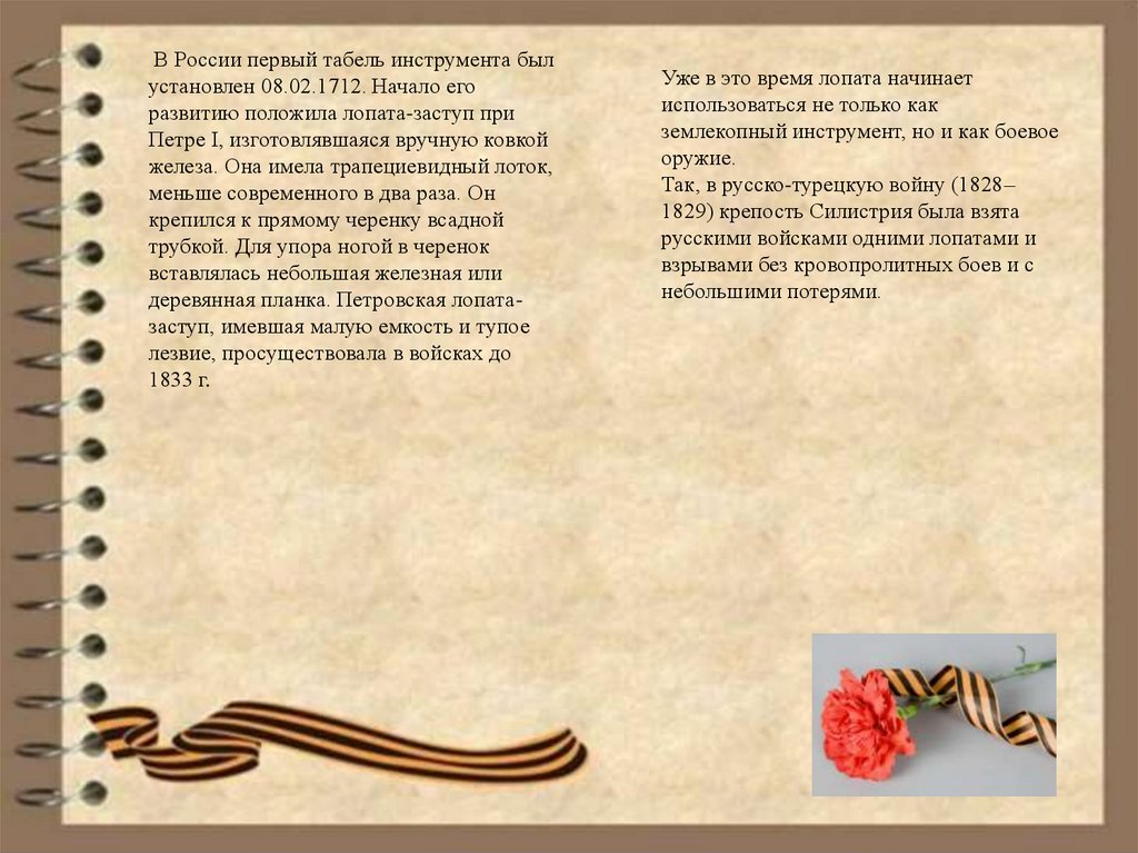 В России первый табель инструмента былустановлен 08.02.1712. Начало его