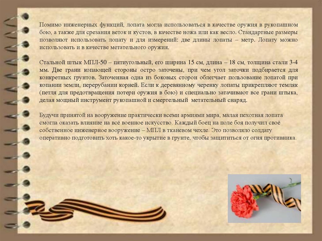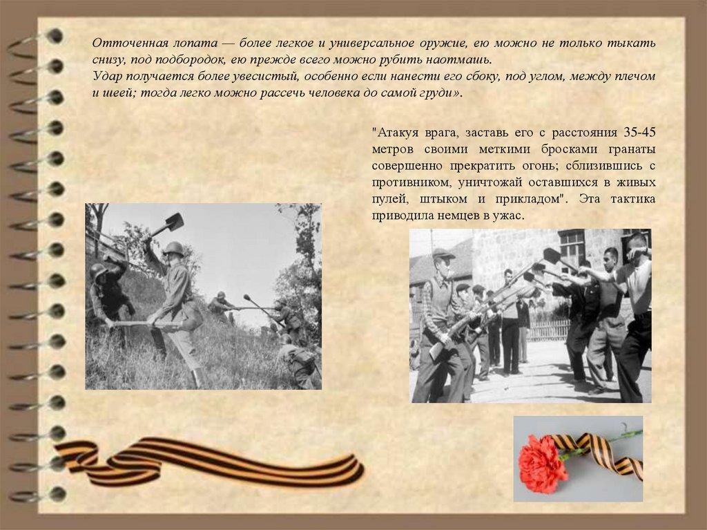 С помощью нее бойцы окапывались во время бомбардировок, потеря лопаты считалась