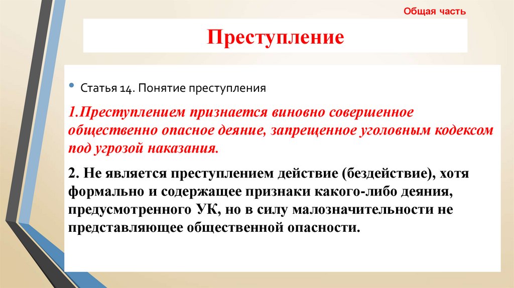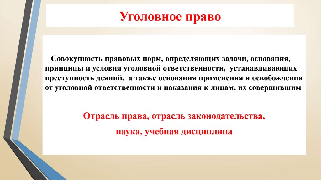 Уголовное правоСовокупность правовых норм, определяющих задачи, основания,