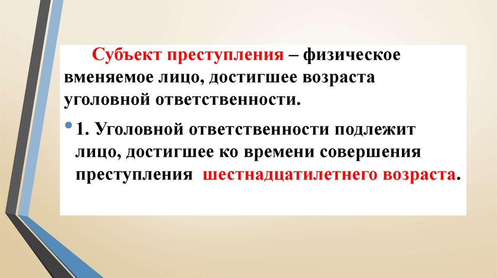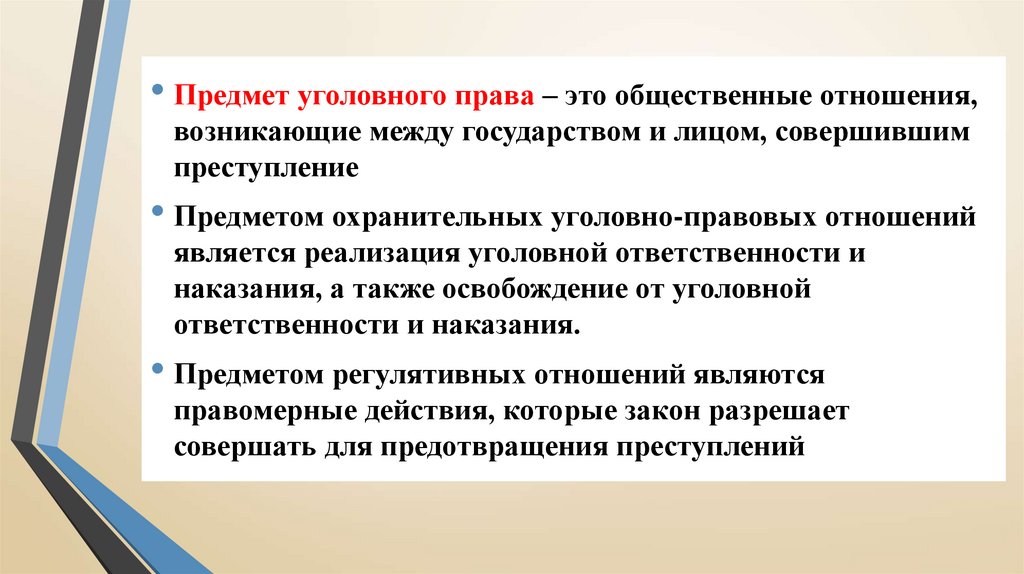 • Предмет уголовного права – это общественные отношения,возникающие между государством и лицом, совершившим