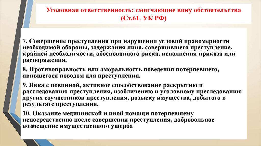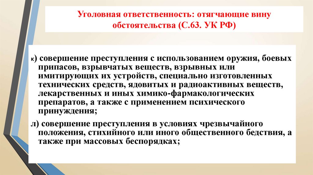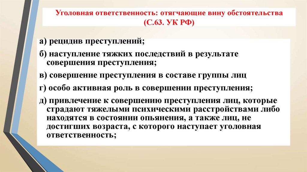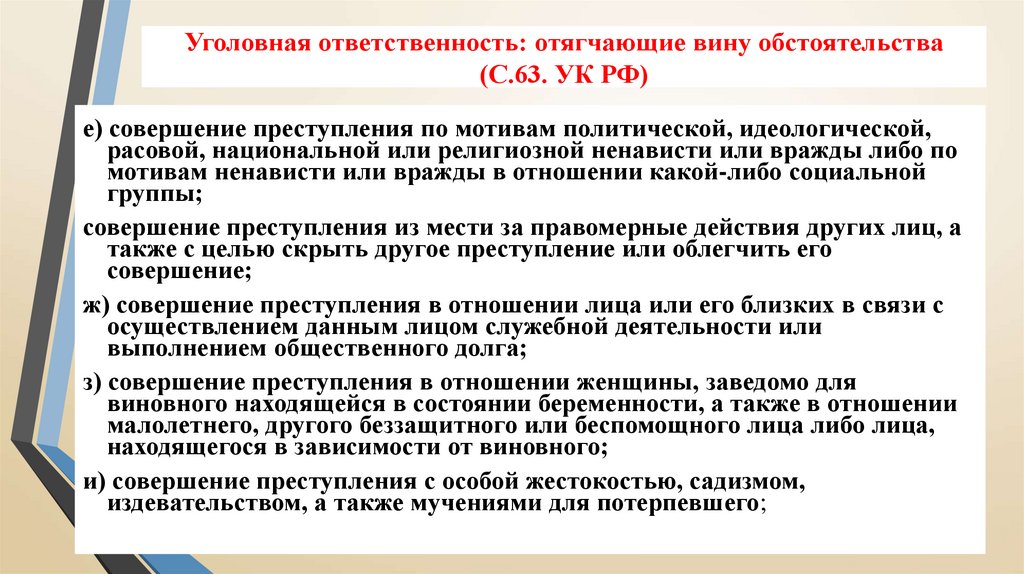 Уголовная ответственность: отягчающие винуобстоятельства (С.63. УК РФ)