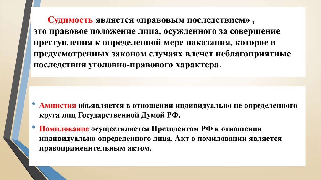 Судимость является «правовым последствием» ,это правовое положение лица, осужденного за совершение