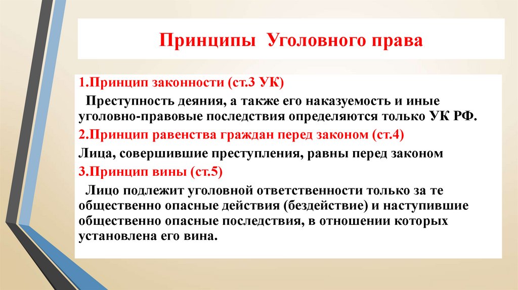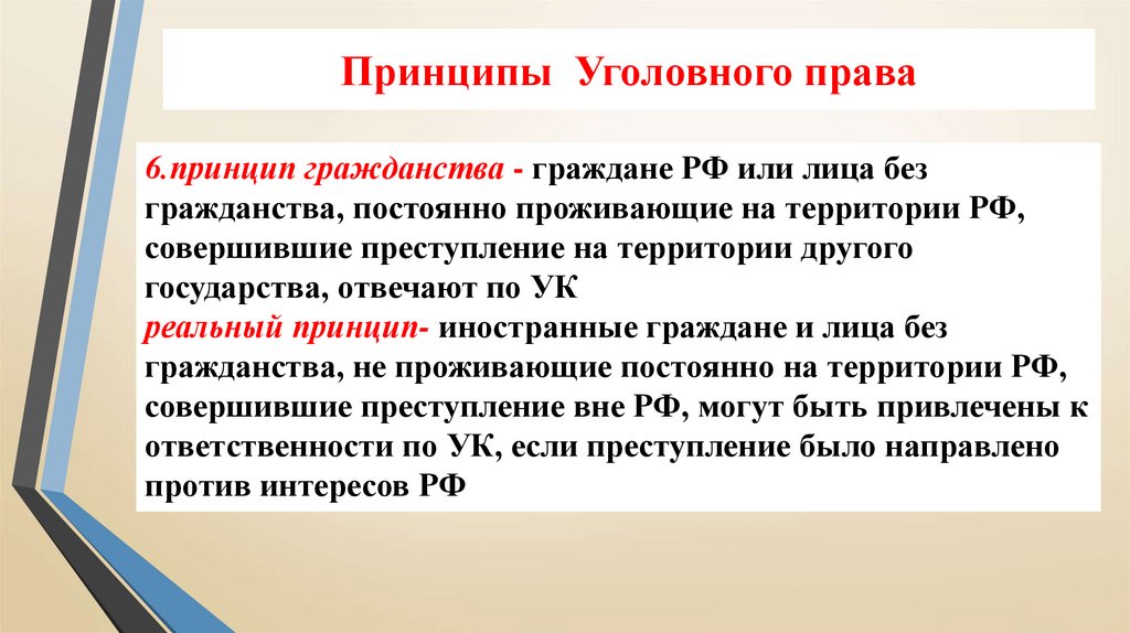 Принципы Уголовного права6.принцип гражданства - граждане РФ или лица без