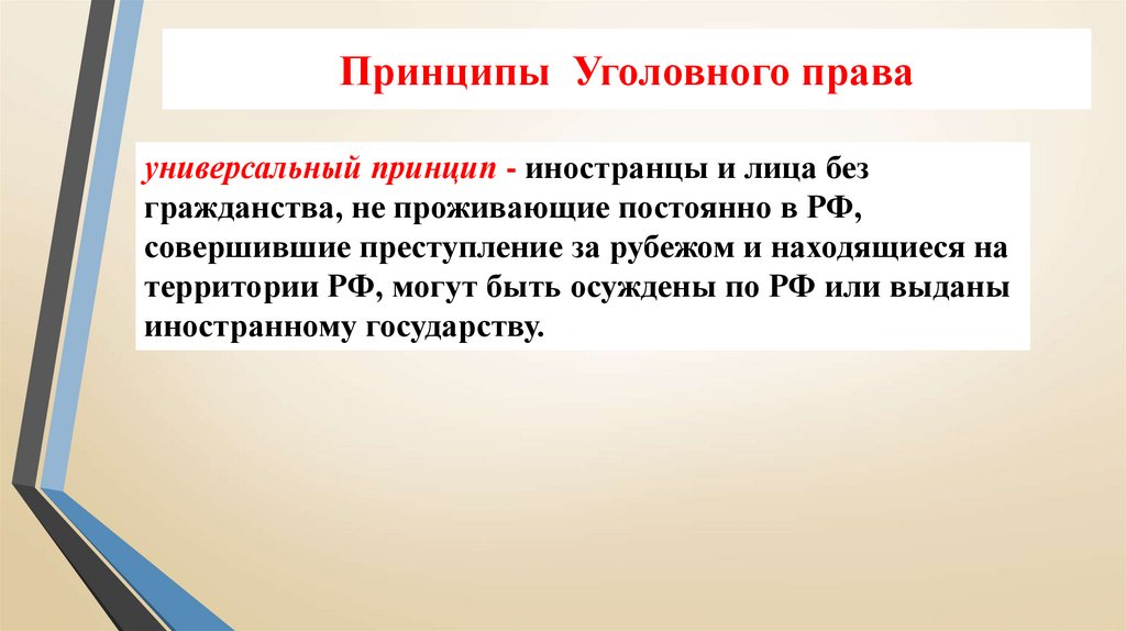 Принципы Уголовного правауниверсальный принцип - иностранцы и лица без