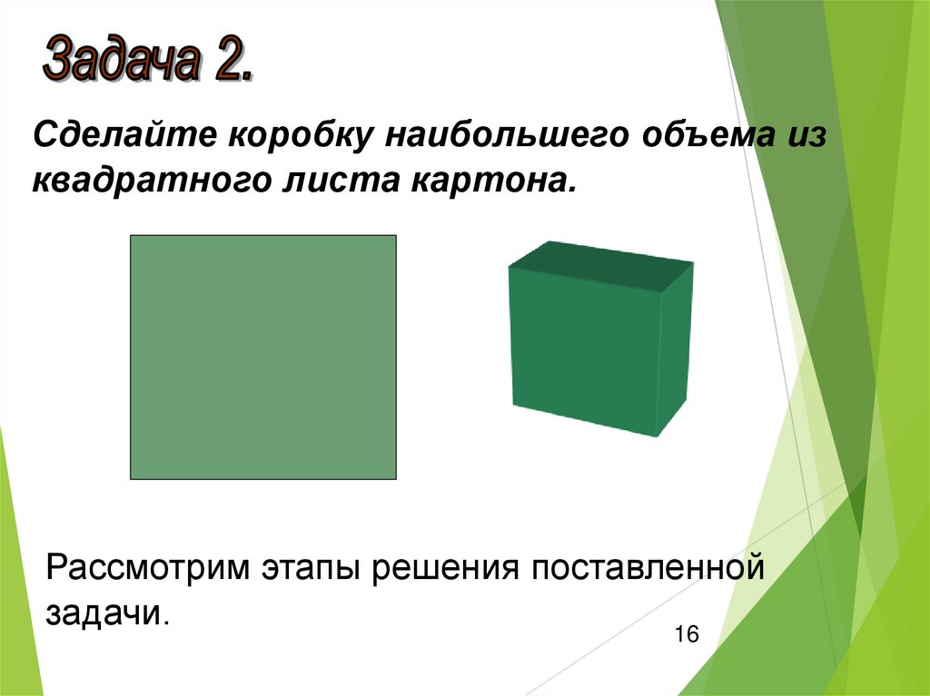 Сделайте коробку наибольшего объема изквадратного листа картона.