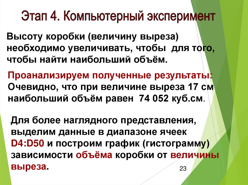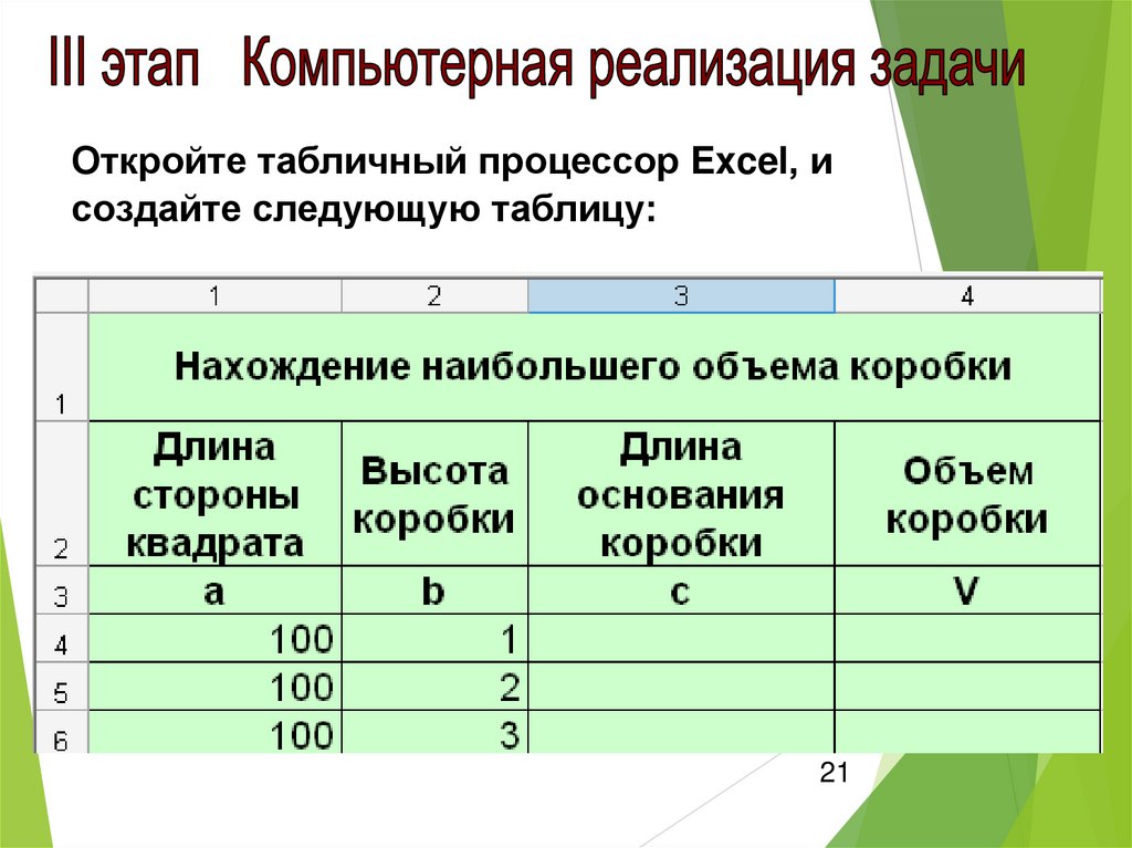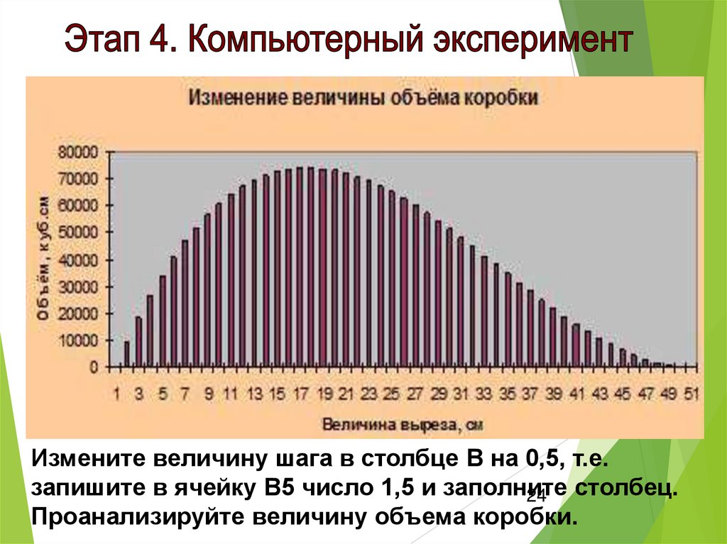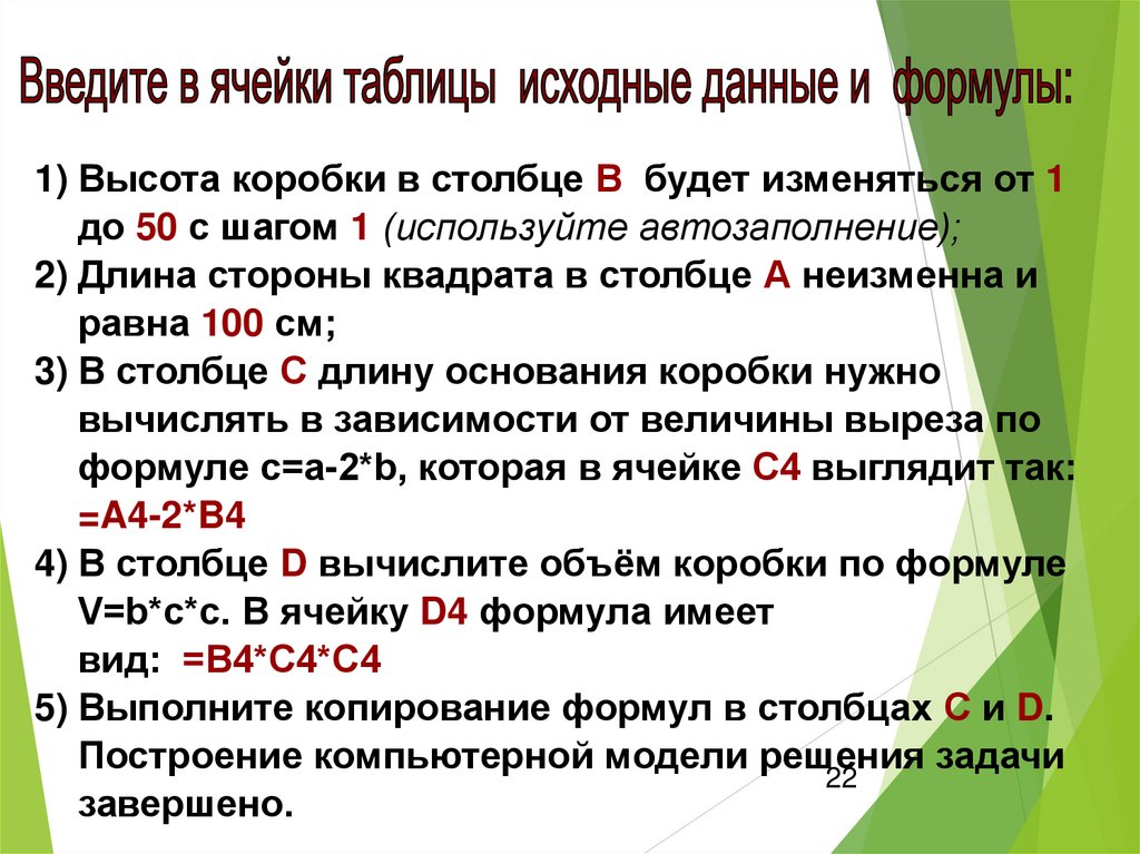 1) Высота коробки в столбце В будет изменяться от 1до 50 с шагом 1 (используйте автозаполнение);