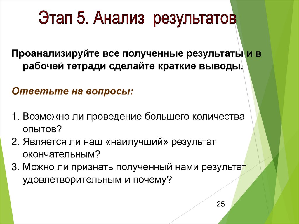 Проанализируйте все полученные результаты и врабочей тетради сделайте краткие выводы.