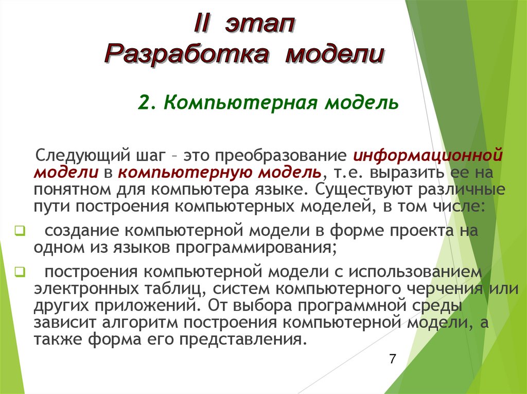 2. Компьютерная модельСледующий шаг – это преобразование информационной