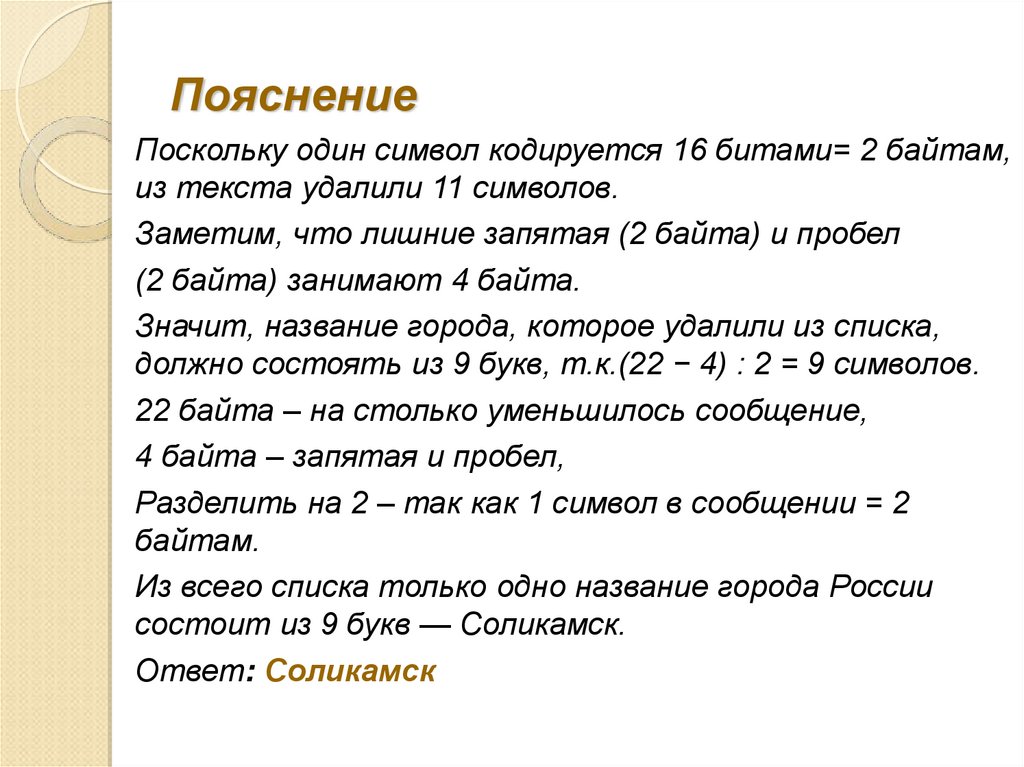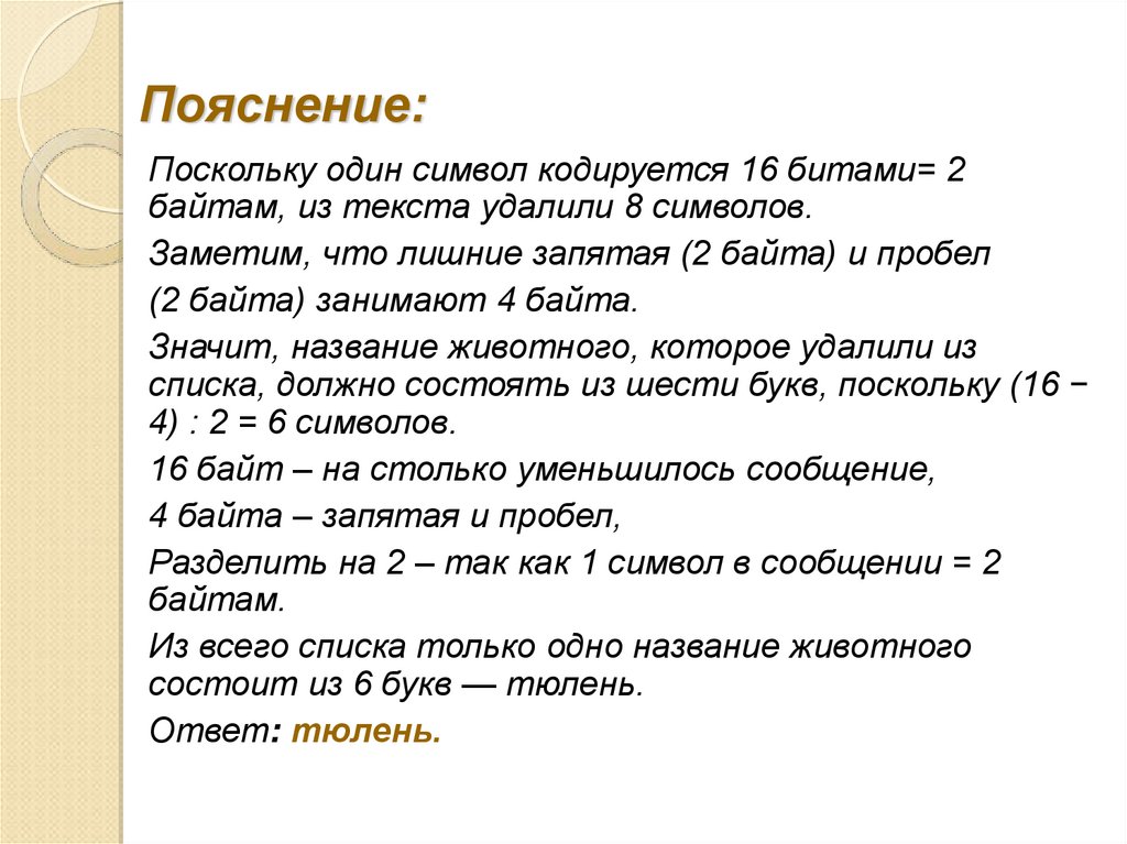 Пояснение:Поскольку один символ кодируется 16 битами= 2