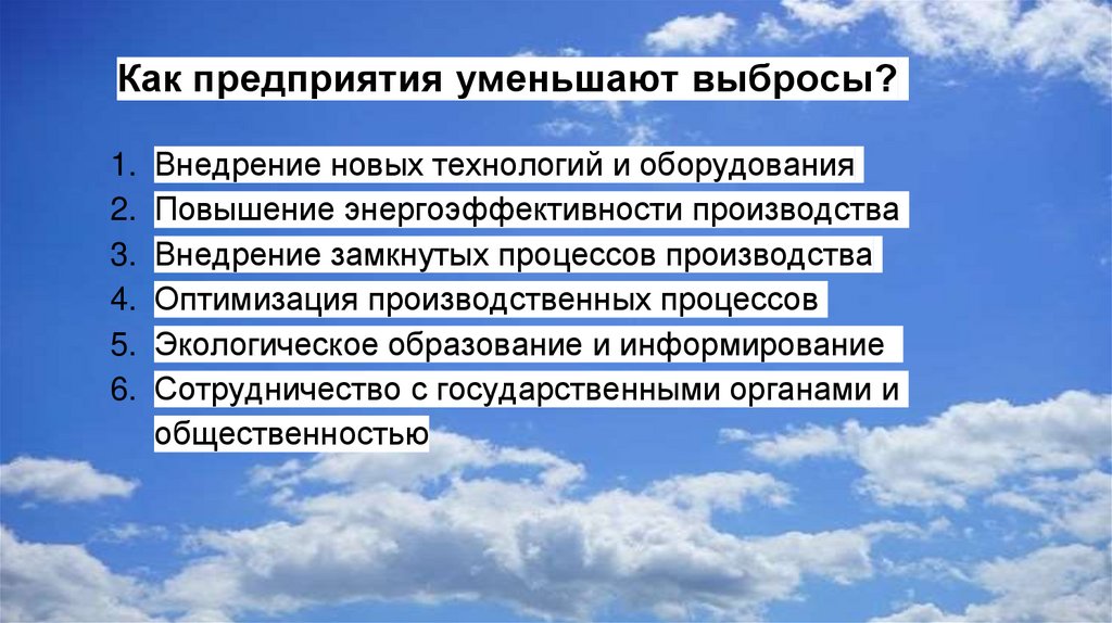 Как предприятия уменьшают выбросы?1. Внедрение новых технологий и оборудования