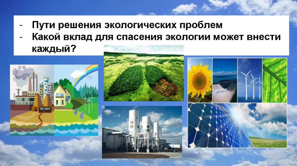 - Пути решения экологических проблем- Какой вклад для спасения экологии может внести