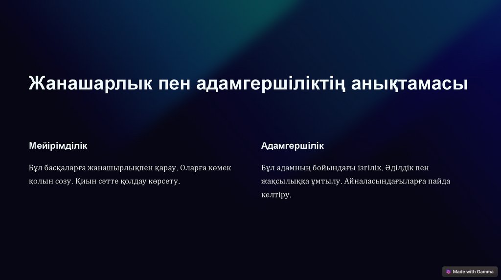 Жанашарлык пен адамгершіліктің анықтамасыМейірімділік