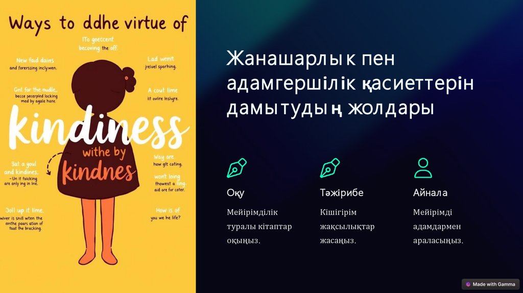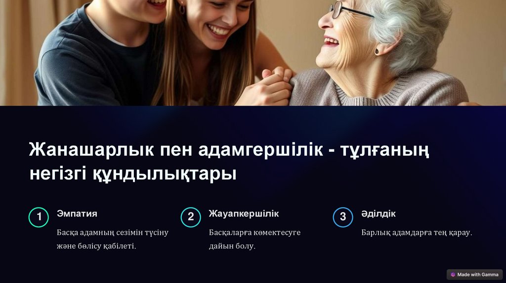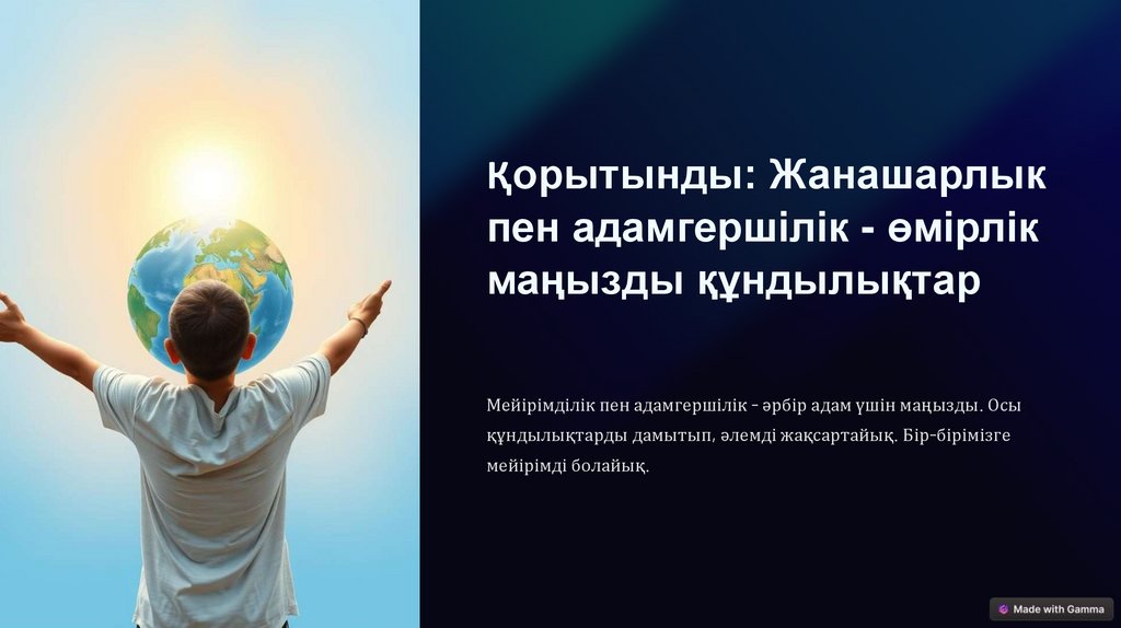 құндылықтарды дамытып, әлемді жақсартайық. Бір-бірімізге