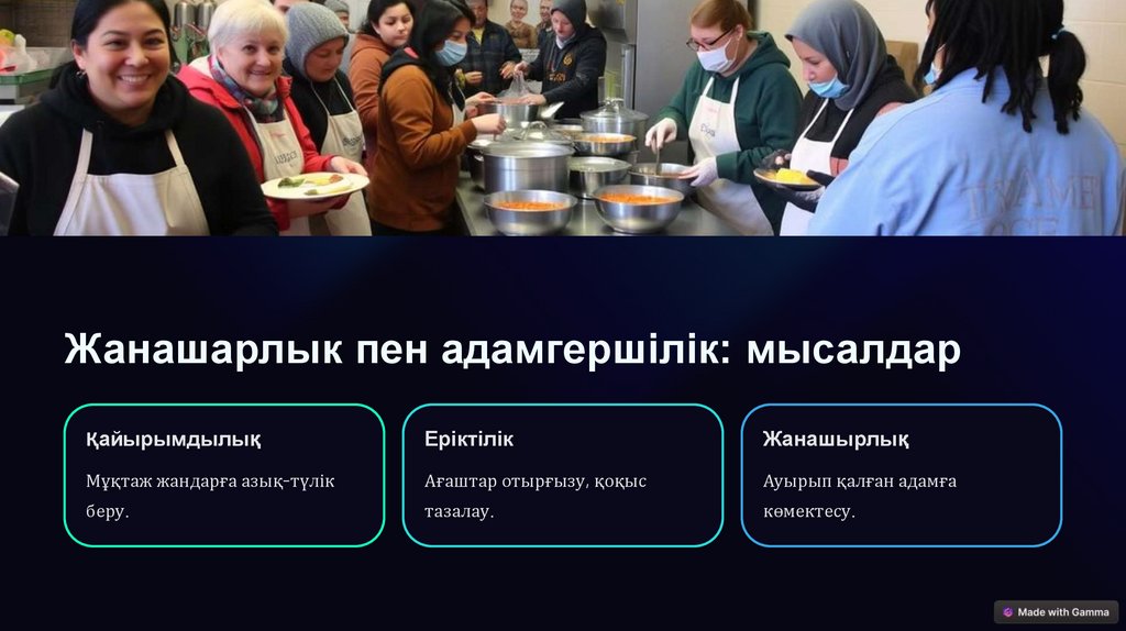 Мейірімділік қауымдастықтың негізі болды. Адамдар бір-біріне