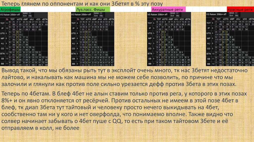8%+ и он явно отклоняется от ресёрчей. Против остальных не имеем в этой позе 4бет в
