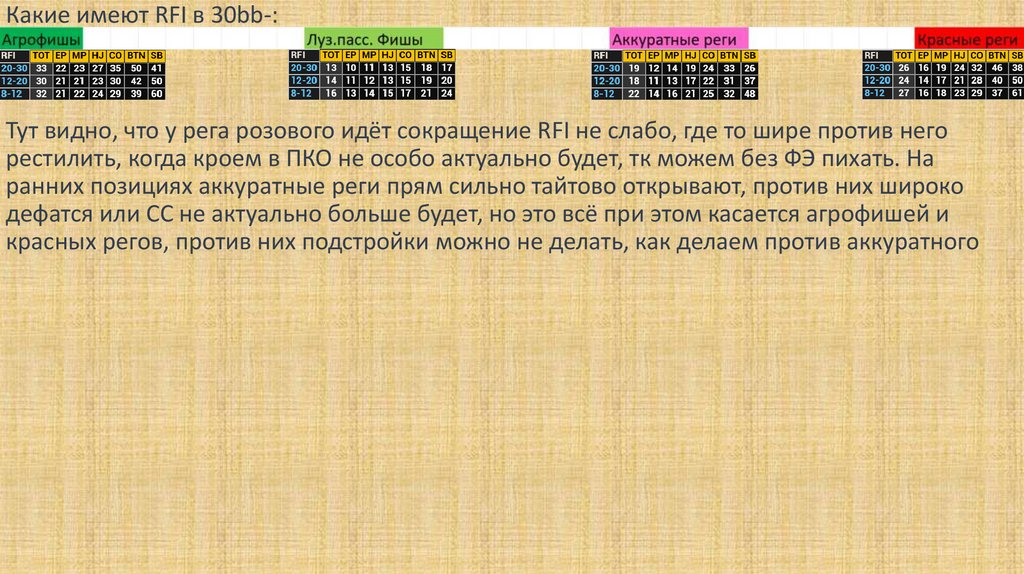 Какие имеют RFI в 30bb-:Тут видно, что у рега розового идёт сокращение RFI не слабо, где то шире против него