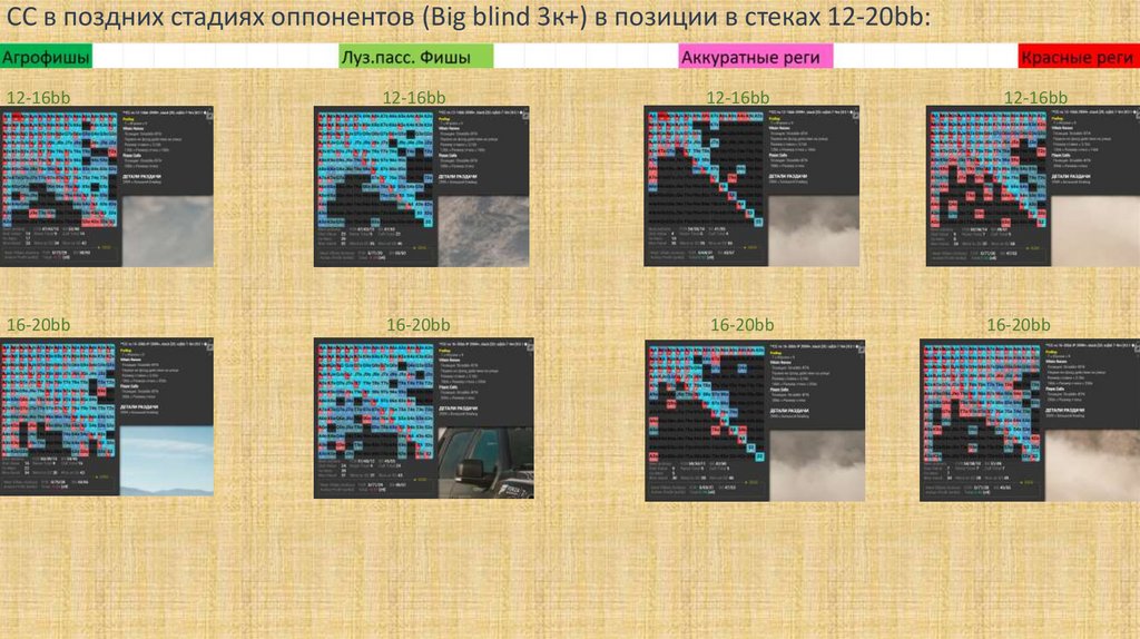СС в поздних стадиях оппонентов (Big blind 3к+) в позиции в стеках 12-20bb:12-16bb