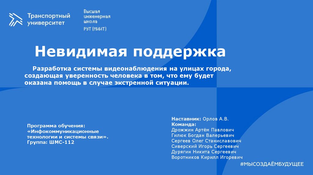 Невидимая поддержкаРазработка системы видеонаблюдения на улицах города,
