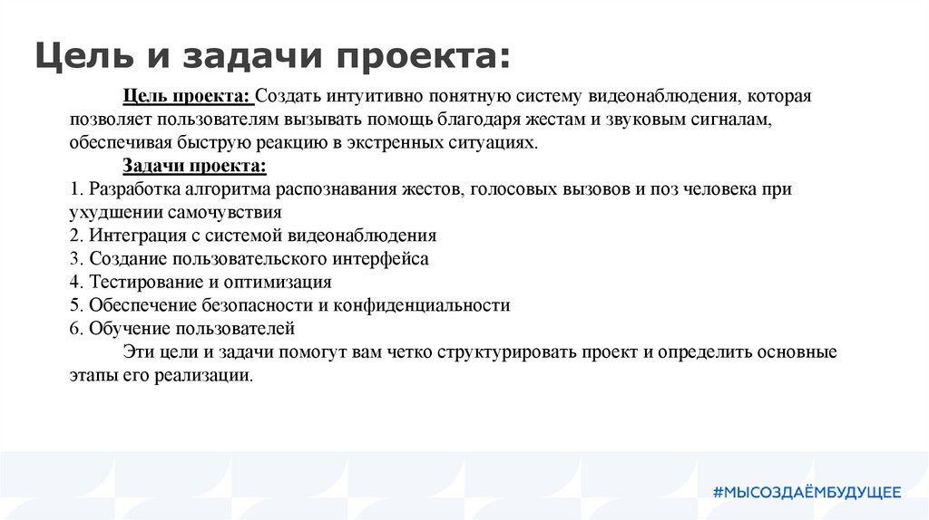 Эти цели и задачи помогут вам четко структурировать проект и определить основные
