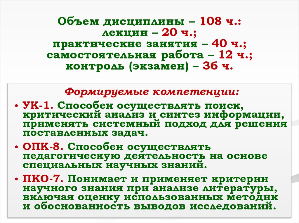 Объем дисциплины – 108 ч.:лекции – 20 ч.;