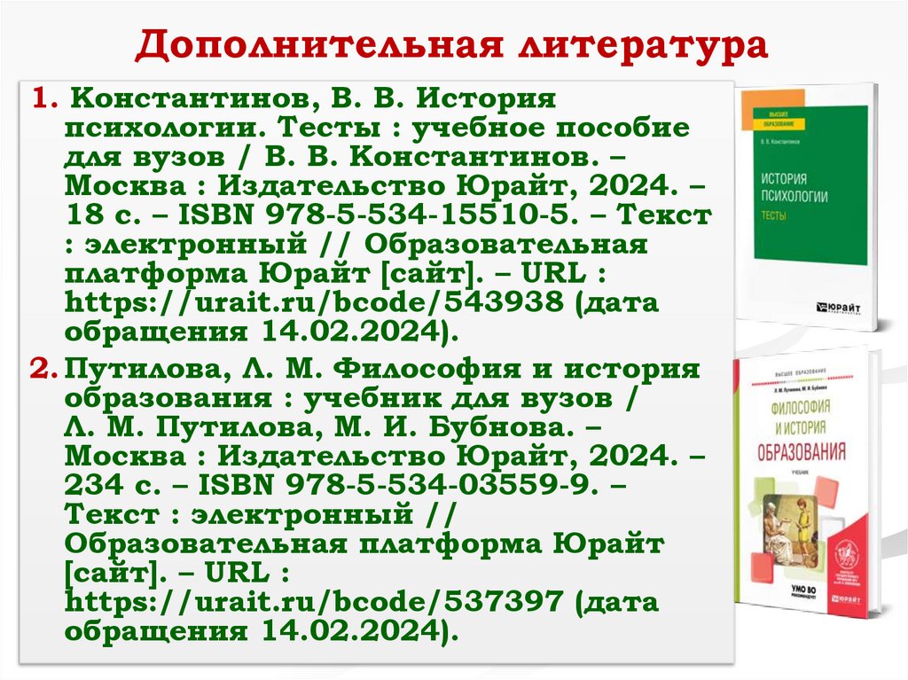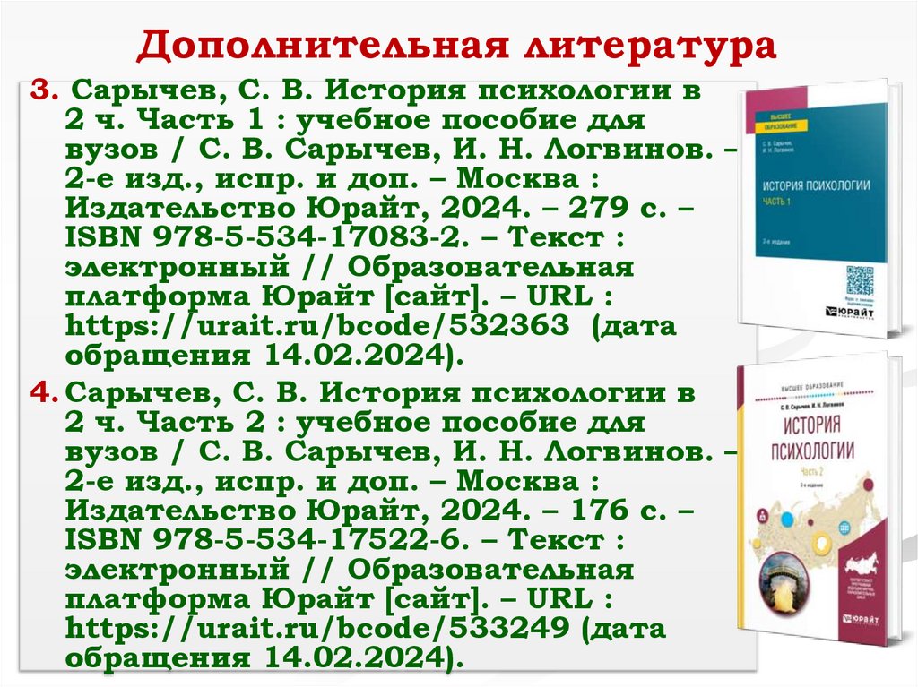Дополнительная литература3. Сарычев, С. В. История психологии в