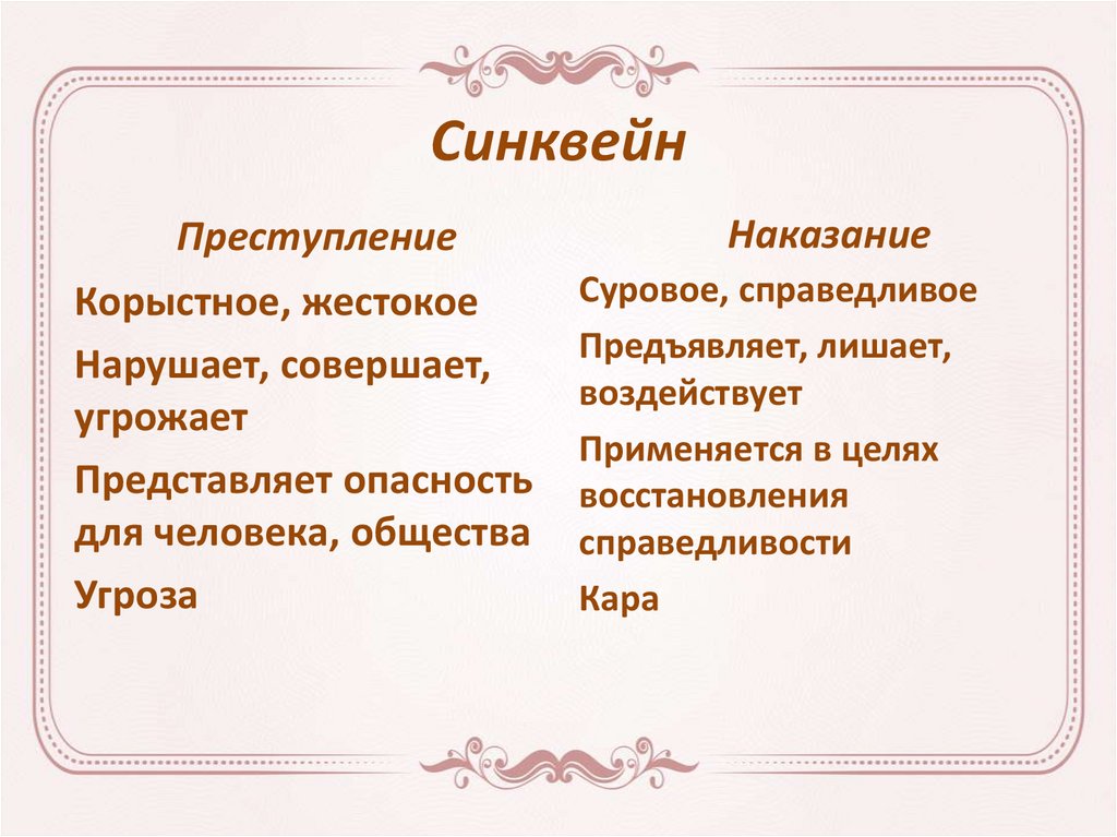 СинквейнПреступление