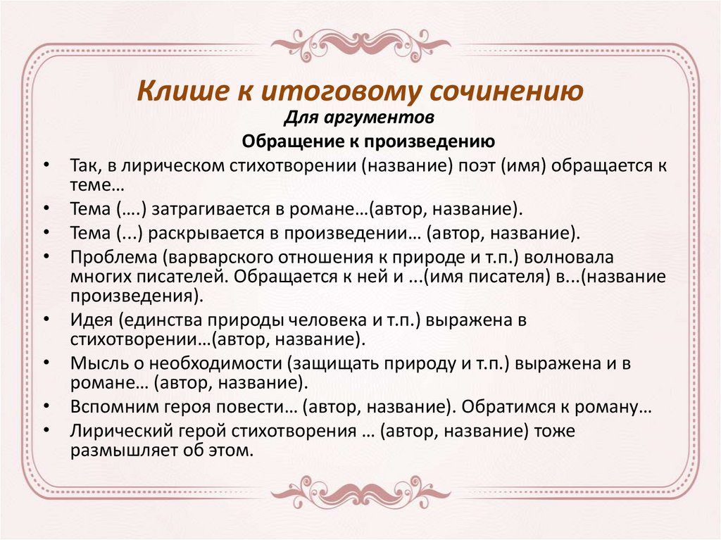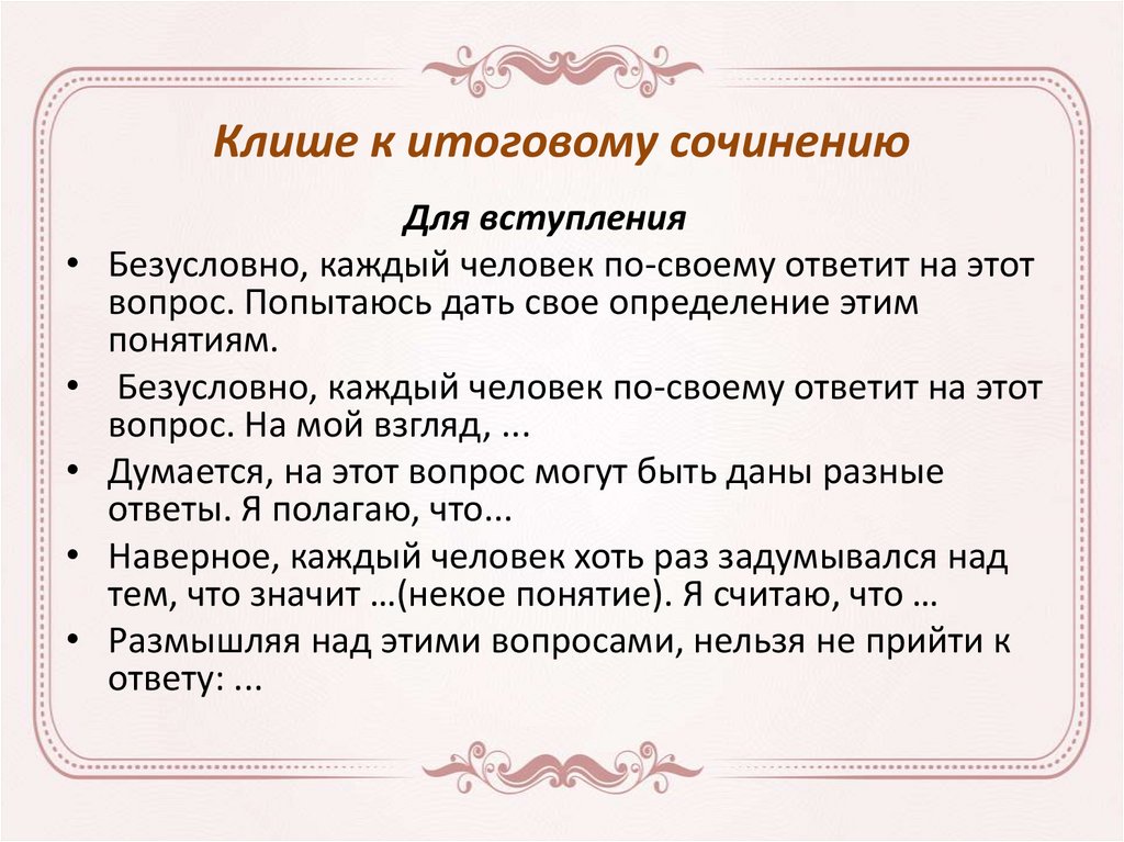 Клише к итоговому сочинениюДля вступления