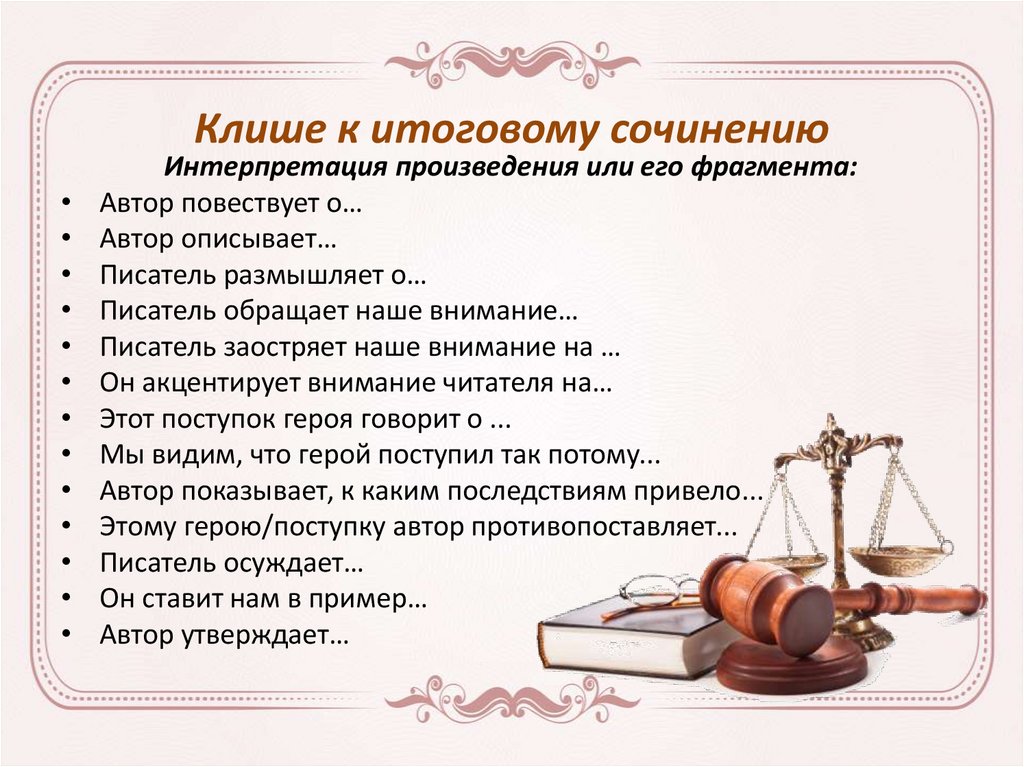 Клише к итоговому сочинениюИнтерпретация произведения или его фрагмента:
