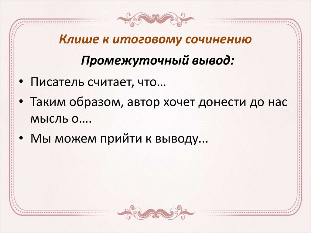 Клише к итоговому сочинениюПромежуточный вывод: