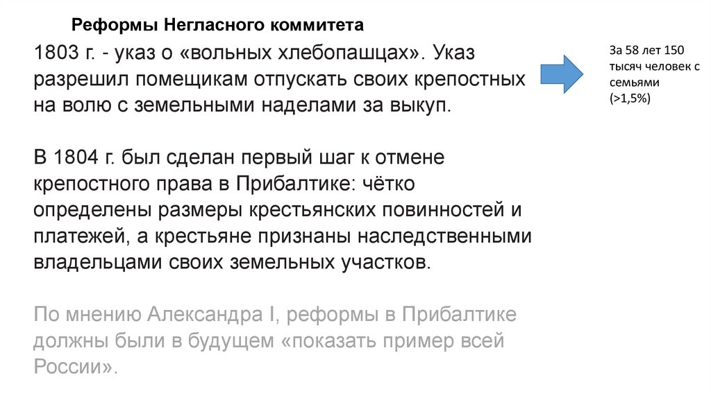 Реформы Негласного коммитета1803 г. - указ о «вольных хлебопашцах». Указ