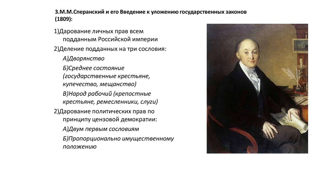 3.М.М.Сперанский и его Введение к уложению государственных законов(1809):