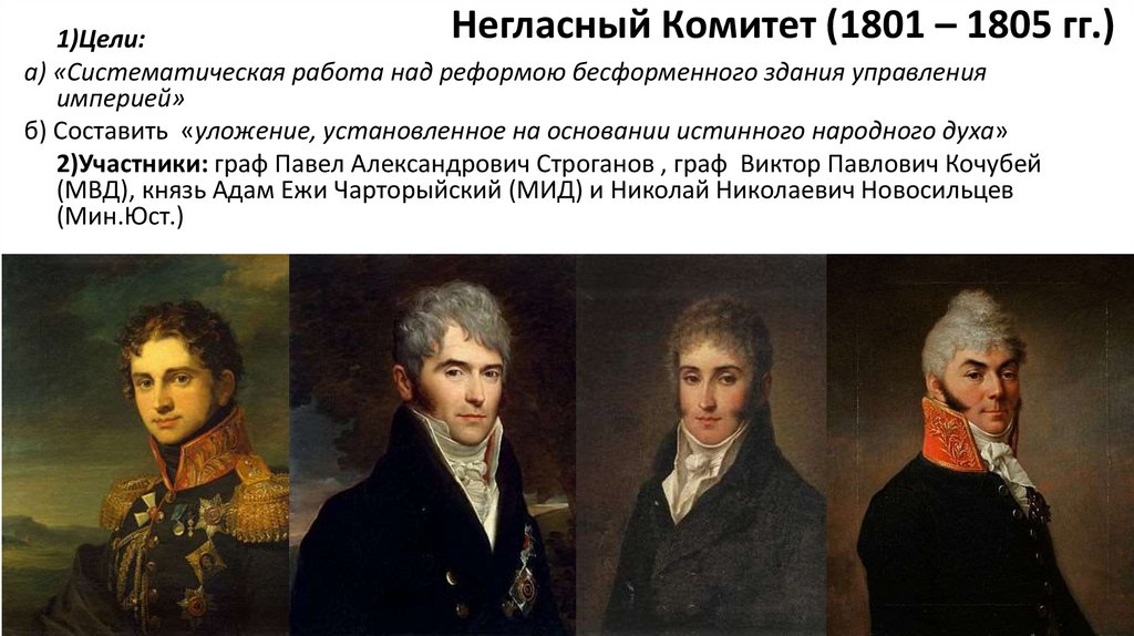 Негласный Комитет (1801 – 1805 гг.)1)Цели: