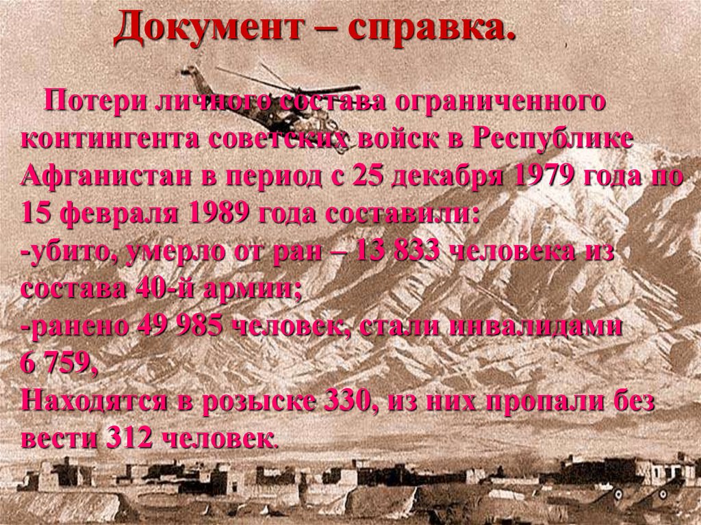 Документ – справка.Потери личного состава ограниченного
